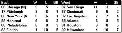 A 4 game series between the 47 Pirates and the 80 Cubs, with both teams tied for 2nd in the National League East, saw the Cubs take 3 out of 4 from the Bucs.